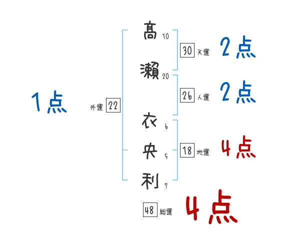 髙瀨衣央利さんの画数の鑑定結果