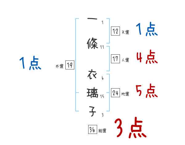 総運![]() | 一條衣璃子さんの総運は36画の3つ星!先見性が豊かです。多少神経質で苦労することも。 あなたの人生を表す1番重要な運勢です。生涯を通じて影響する総合運となり、主に50歳以降の晩年期に影響を及ぼします。 |