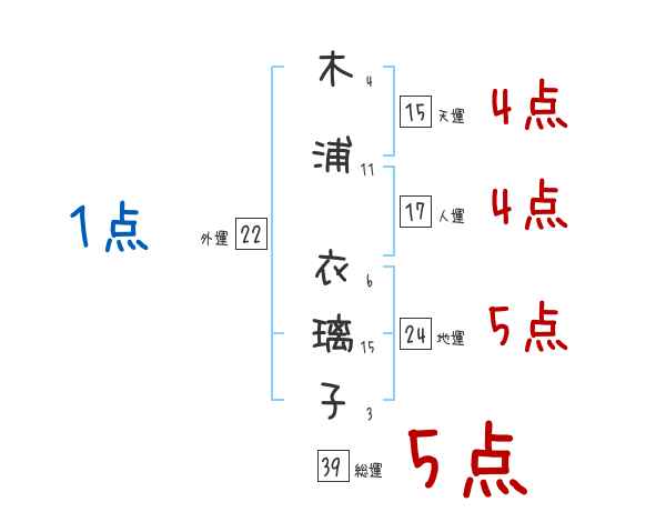 木浦衣璃子さんの画数の鑑定結果