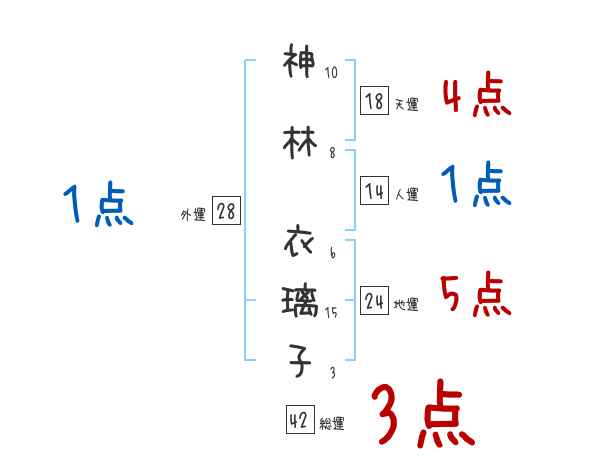 天運![]() | 神林衣璃子さんの天運は18画の4つ星!情熱的で剛気。忍耐力があり信頼される。 家系が持つ宿命的な運勢を表します。祖先から受け継いだ苗字ですので自分の力が及びません。家柄を象徴します。 |