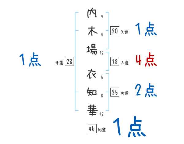 人運![]() | 内木場衣知華さんの人運は18画の4つ星!情熱的で剛気。忍耐力があり信頼される。 性格や才能などを表す2番目に重要な運勢です。人間関係や協調性、社会的な成功に影響します。主に20歳から50歳ぐらいまでの中年期の運勢を表します。 |