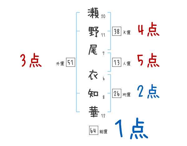家系が持つ宿命的な運勢を表します。祖先から受け継いだ苗字ですので自分の力が及びません。家柄を象徴します。