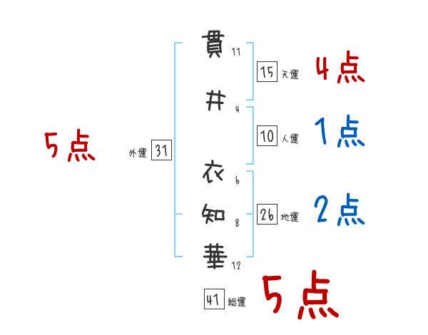 外運![]() | 貫井衣知華さんの外運は31画の5つ星!社交性があり判断力に優れる。順風満帆な人生で円満な生活。 生活面を象徴する運勢です。外部から受ける影響力を表し、結婚運、家庭運や職場、環境への順応性を表します。 |