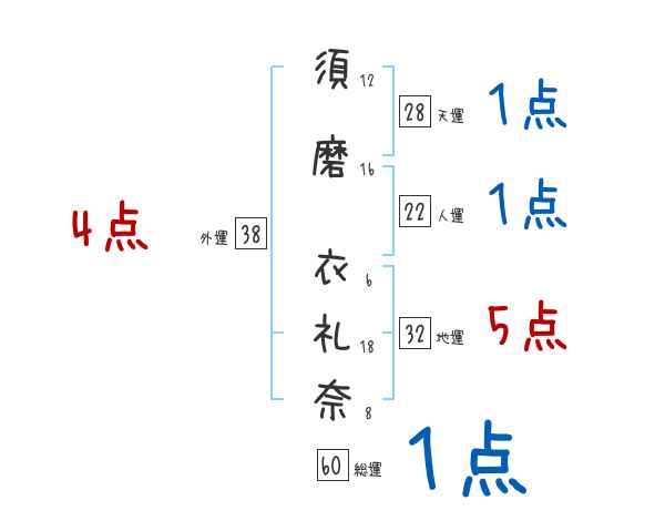 須磨衣礼奈さんの画数の鑑定結果