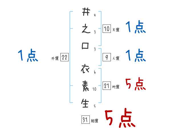 井之口衣素生さんの画数の鑑定結果