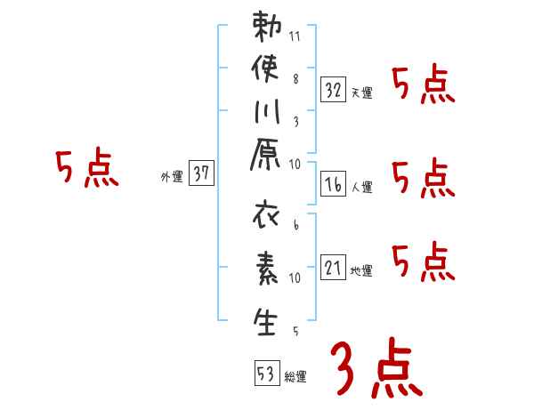 勅使川原衣素生さんの画数の鑑定結果