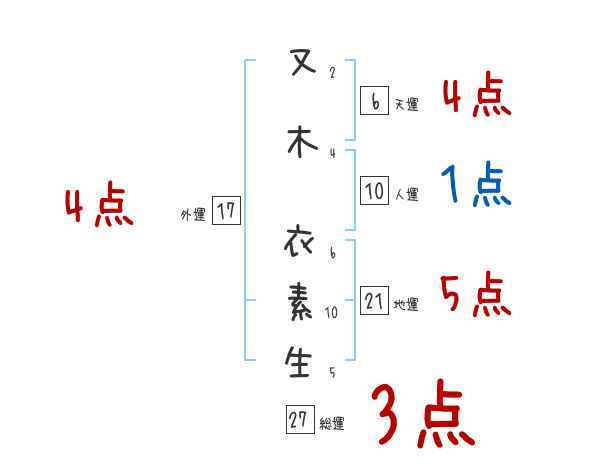 又木衣素生さんの画数の鑑定結果