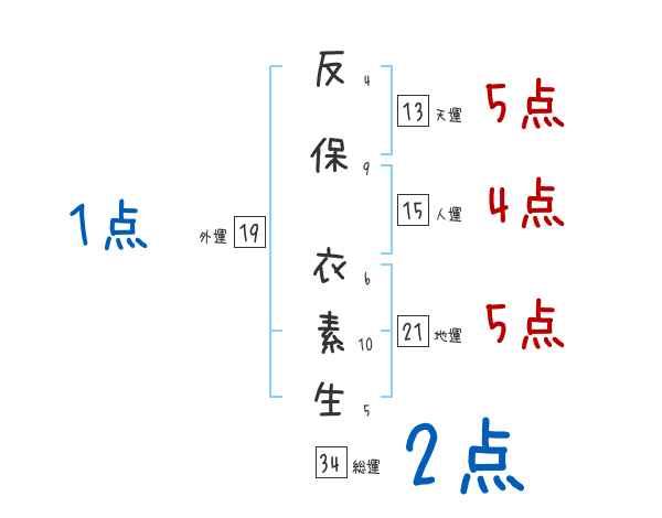 外運![]() | 反保衣素生さんの外運は19画の1つ星!優れた才能を持ちますが、協調性が足りないことも。周りの人と協力する事を意識しましょう。 生活面を象徴する運勢です。外部から受ける影響力を表し、結婚運、家庭運や職場、環境への順応性を表します。 |