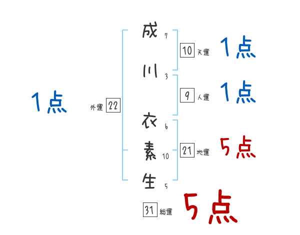 成川衣素生さんの画数の鑑定結果