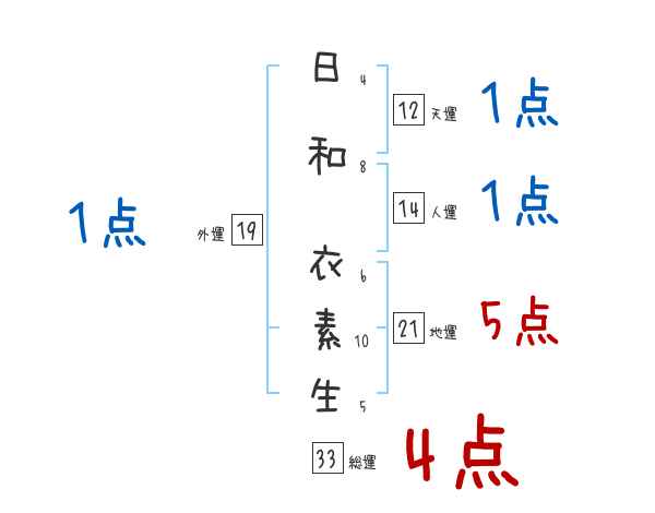 日和衣素生さんの画数の鑑定結果
