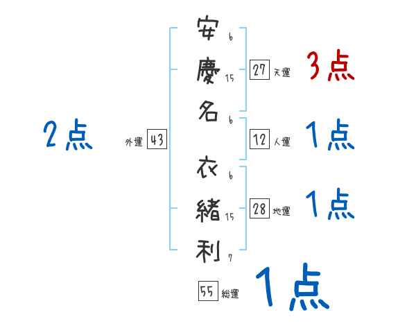 安慶名衣緒利さんの画数の鑑定結果