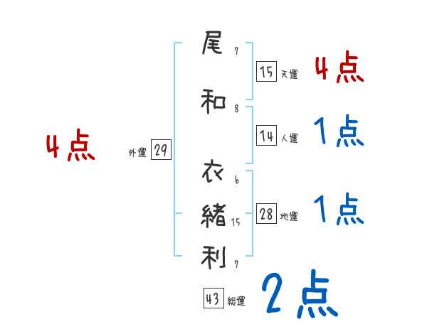 尾和衣緒利さんの画数の鑑定結果