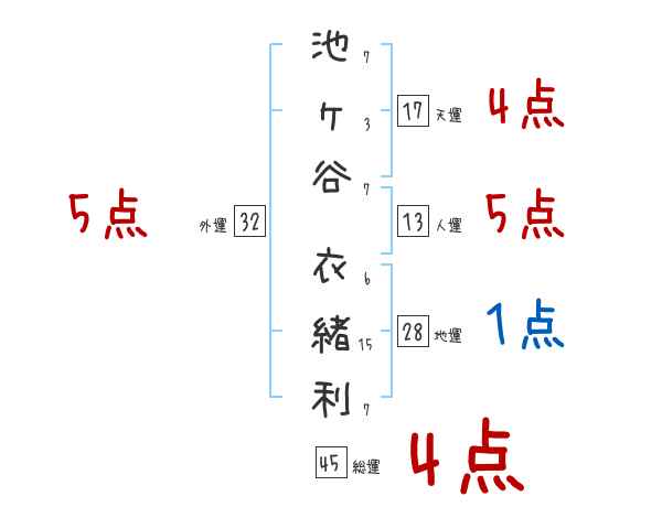 池ヶ谷衣緒利さんの画数の鑑定結果