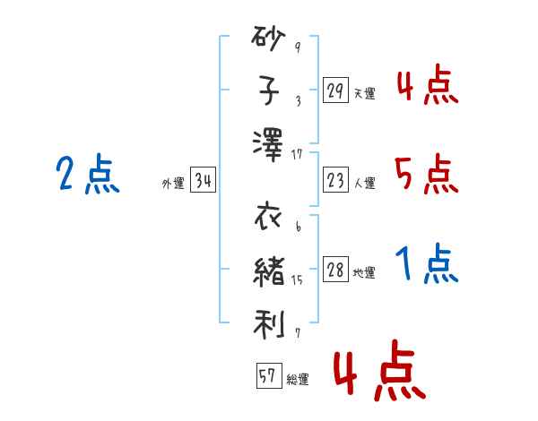 総運![]() | 砂子澤衣緒利さんの総運は57画の4つ星!向上心があり人望がある。地位を得る。 あなたの人生を表す1番重要な運勢です。生涯を通じて影響する総合運となり、主に50歳以降の晩年期に影響を及ぼします。 |