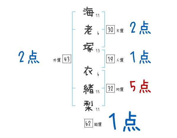 海老塚衣緒梨さんの画数の鑑定結果