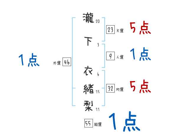 瀧下衣緒梨さんの画数の鑑定結果