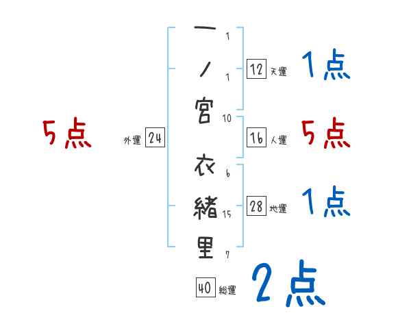 一ノ宮衣緒里さんの外運は24画の5つ星