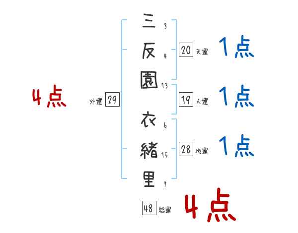 三反園衣緒里さんの画数の鑑定結果