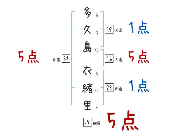 多久島衣緒里さんの画数の鑑定結果