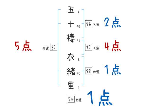 五十棲衣緒里さんの画数の鑑定結果