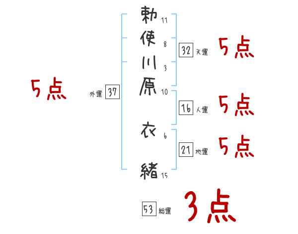 勅使川原衣緒さんの画数の鑑定結果