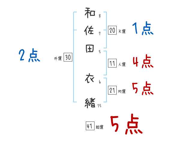 総運![]() | 和佐田衣緒さんの総運は41画の5つ星!大志を抱き、目標に向かって実力を発揮し達成する。温和な性格。 あなたの人生を表す1番重要な運勢です。生涯を通じて影響する総合運となり、主に50歳以降の晩年期に影響を及ぼします。 |