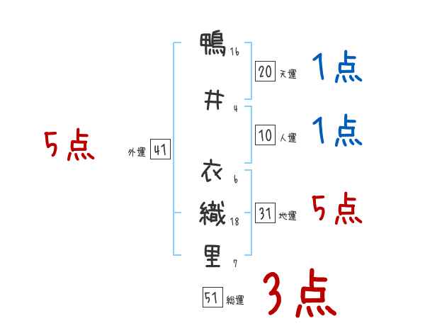 鴨井衣織里さんの画数の鑑定結果