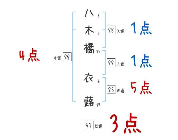 八木橋衣蕗さんの画数の鑑定結果