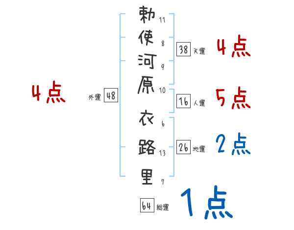 天運![]() | 勅使河原衣路里さんの天運は38画の4つ星!温厚な性格で技術的な才能を発揮する。職人的な仕事に向いている。 家系が持つ宿命的な運勢を表します。祖先から受け継いだ苗字ですので自分の力が及びません。家柄を象徴します。 |