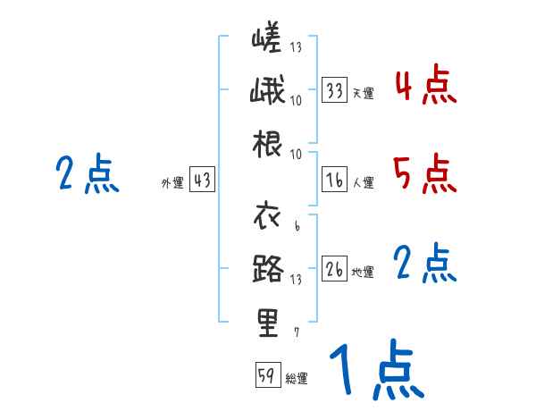 嵯峨根衣路里さんの画数の鑑定結果