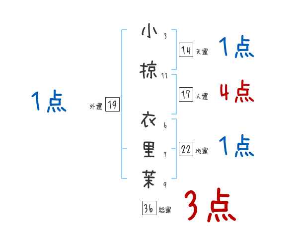 小掠衣里茉さんの画数の鑑定結果