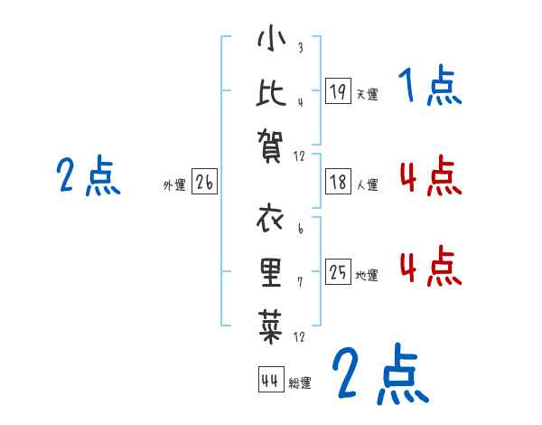 小比賀衣里菜さんの画数の鑑定結果