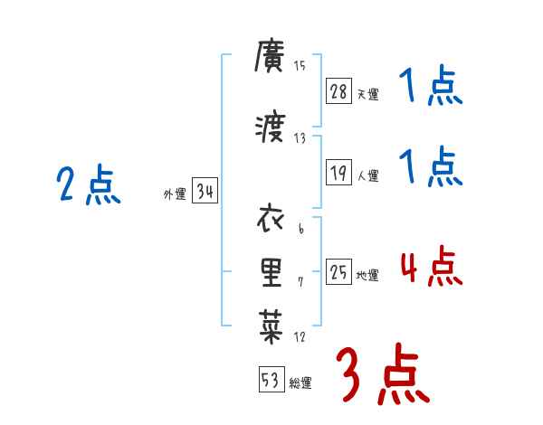 天運![]() | 廣渡衣里菜さんの天運は28画の1つ星!家庭環境に注意。スポーツで活躍できる能力があるかも。 家系が持つ宿命的な運勢を表します。祖先から受け継いだ苗字ですので自分の力が及びません。家柄を象徴します。 |