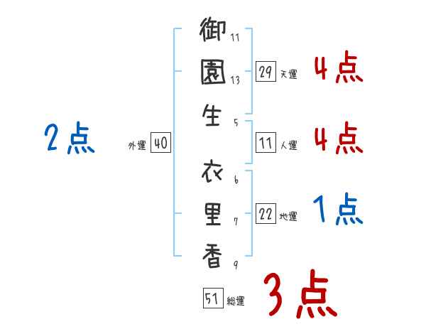 御園生衣里香さんの画数の鑑定結果