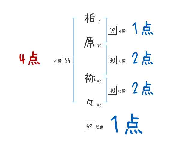 天運![]() | 柏原袮々さんの天運は19画の1つ星!優れた才能を持ちますが、協調性が足りないことも。周りの人と協力する事を意識しましょう。 家系が持つ宿命的な運勢を表します。祖先から受け継いだ苗字ですので自分の力が及びません。家柄を象徴します。 |