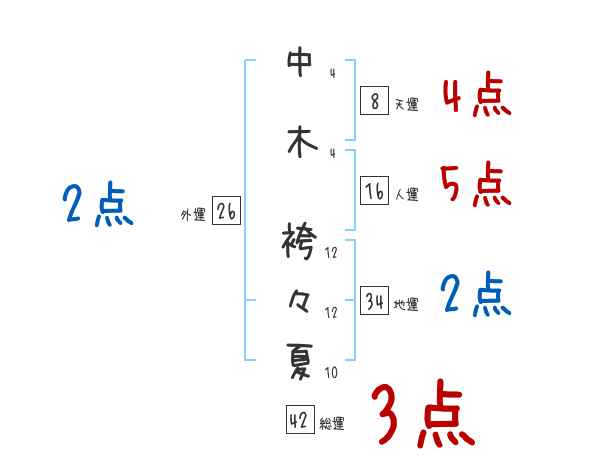 総運![]() | 中木袴々夏さんの総運は42画の3つ星!病気に注意。多芸であるが消極的でおとなしい。 あなたの人生を表す1番重要な運勢です。生涯を通じて影響する総合運となり、主に50歳以降の晩年期に影響を及ぼします。 |