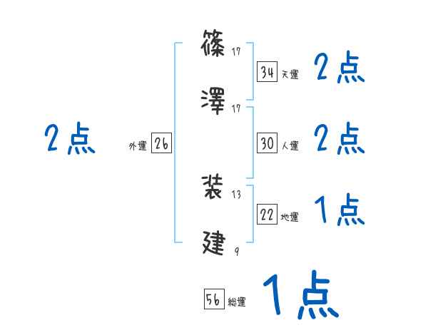 篠澤装建さんの画数の鑑定結果