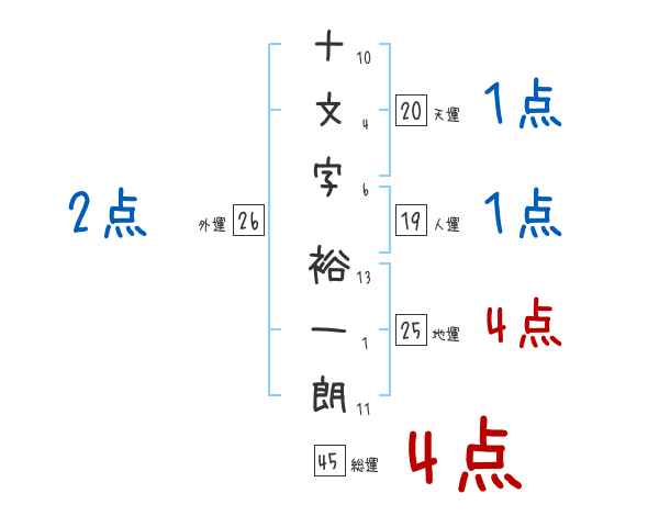 外運![]() | 十文字裕一朗さんの外運は26画の2つ星!波瀾万丈かも。信頼できる人を大事にしましょう。 生活面を象徴する運勢です。外部から受ける影響力を表し、結婚運、家庭運や職場、環境への順応性を表します。 |