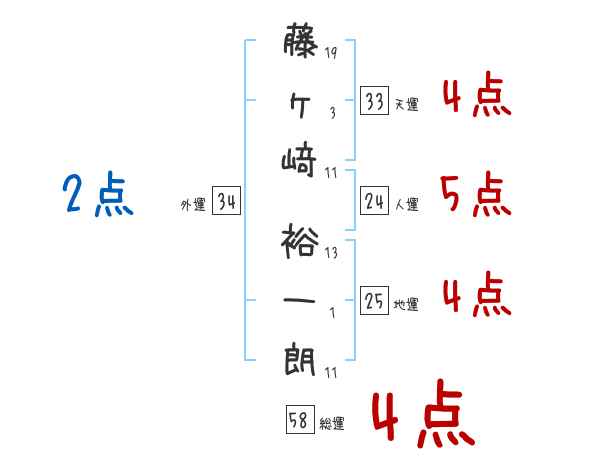 藤ヶ﨑裕一朗さんの画数の鑑定結果