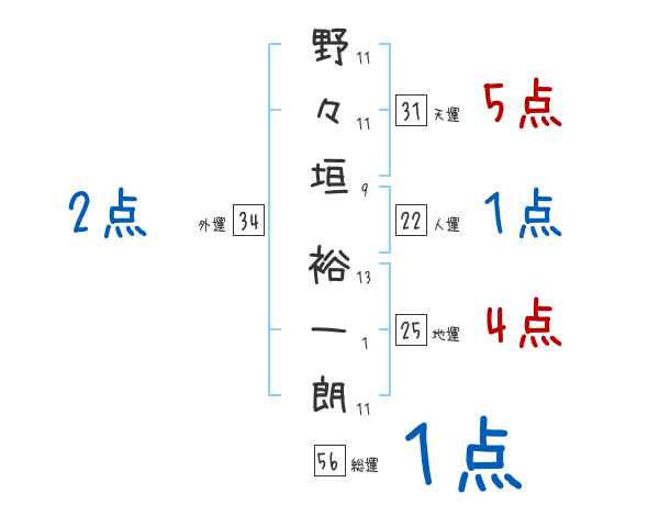 野々垣裕一朗さんの画数の鑑定結果