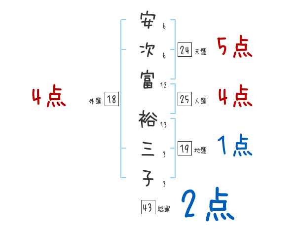 安次富裕三子さんの画数の鑑定結果