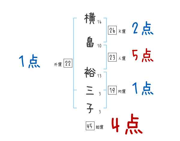 横畠裕三子さんの画数の鑑定結果
