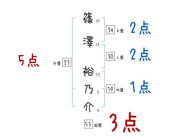 外運![]() | 篠澤裕乃介さんの外運は23画の5つ星!想像力に優れ活力がある。一代で成功し名誉を手に入れる。 生活面を象徴する運勢です。外部から受ける影響力を表し、結婚運、家庭運や職場、環境への順応性を表します。 |