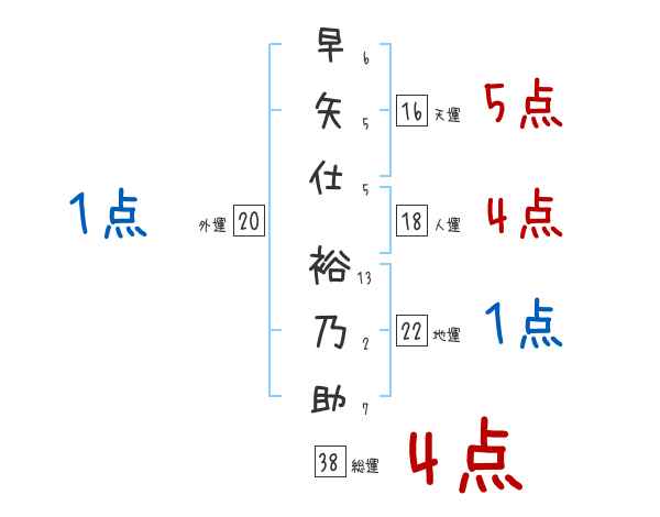 早矢仕裕乃助さんの画数の鑑定結果