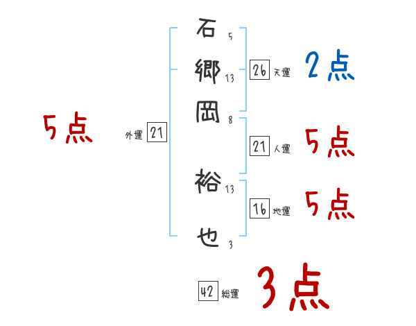 石郷岡裕也さんの画数の鑑定結果