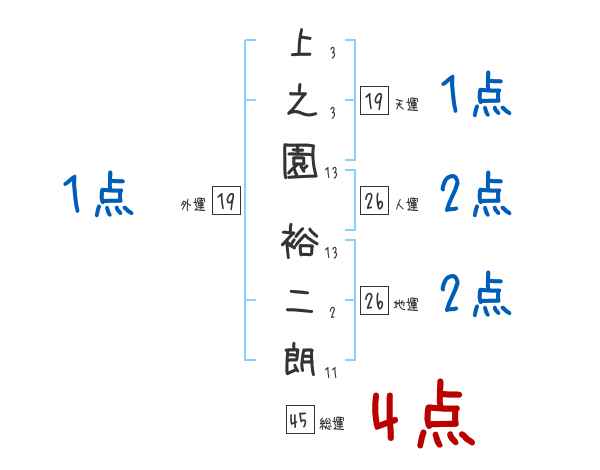 上之園裕二朗さんの画数の鑑定結果