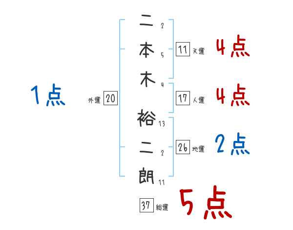 天運![]() | 二本木裕二朗さんの天運は11画の4つ星!着実に富や地位を得る幸運な人生。 家系が持つ宿命的な運勢を表します。祖先から受け継いだ苗字ですので自分の力が及びません。家柄を象徴します。 |