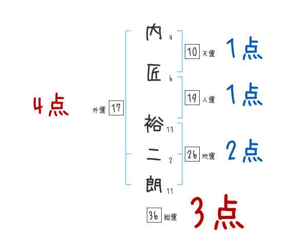 内匠裕二朗さんの画数の鑑定結果