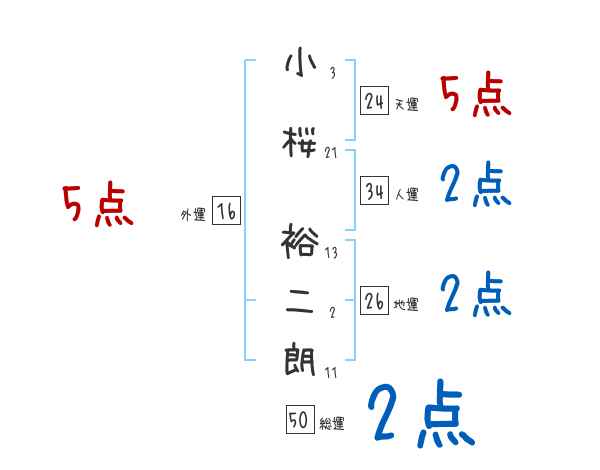 小桜裕二朗さんの画数の鑑定結果