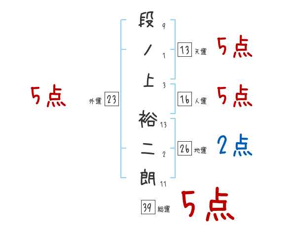 段ノ上裕二朗さんの画数の鑑定結果